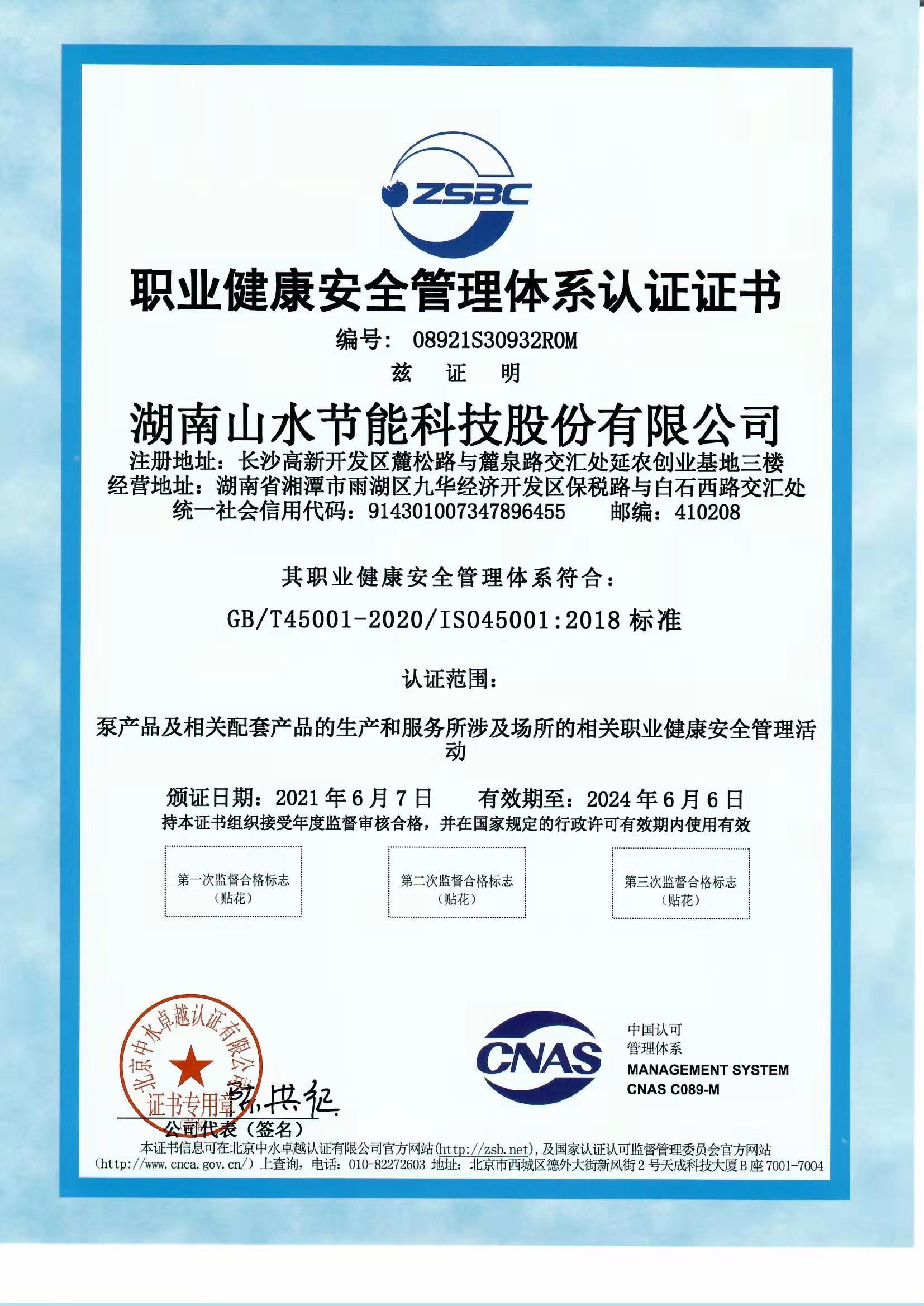 山水節能通過ISO9000、ISO14001環境體系認證、節能產品認證、節能服務資格認證、安全生產標準化認證;擁有中國石油一級物資供應商資格、中國石化物資供應商資格等。