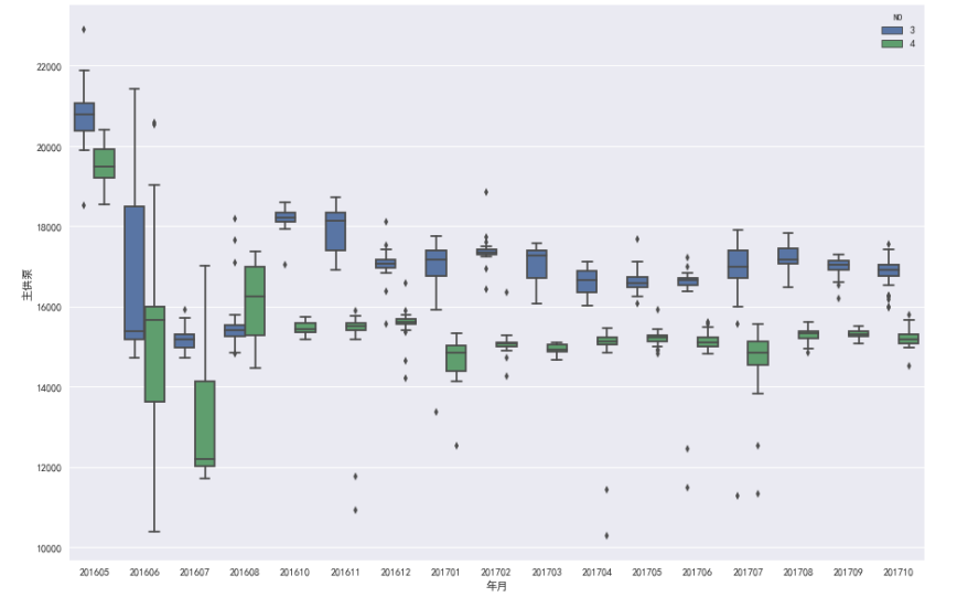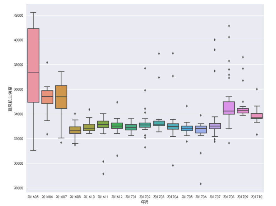 選取待展示的參數,使用箱線圖繪制每月的耗電分布情況,見圖3所示;根據需要,也可以選取屬于同一類別的兩個或兩個以上參數進行對比,見圖4所示。
