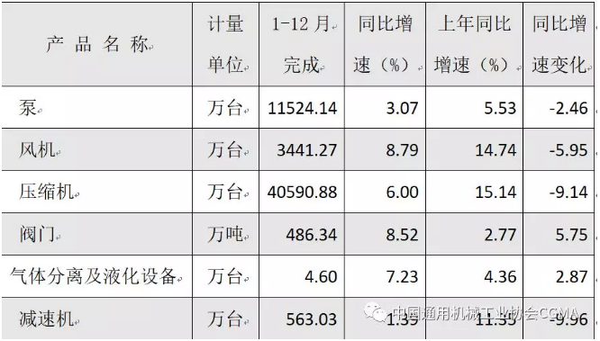 表一:2018年1-12月通用機(jī)械主要產(chǎn)品產(chǎn)量完成情況